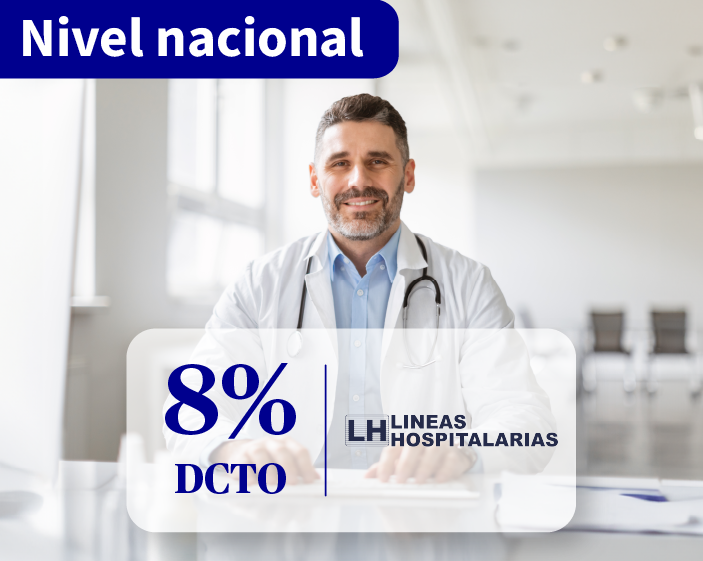 Obtén 8% descuento en compras de la tienda y descuento para empresas en implementos de dotación de consultorios con productos especializados, incluidos en el portafolio del Líneas Hospitalarias.