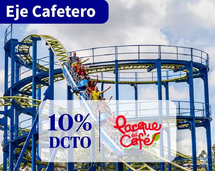 Vive la magia del parque del café. Aprovecha 10 % de DCTO en el Parque del Café y vive un día inolvidable entre atracciones, naturaleza y café colombiano.