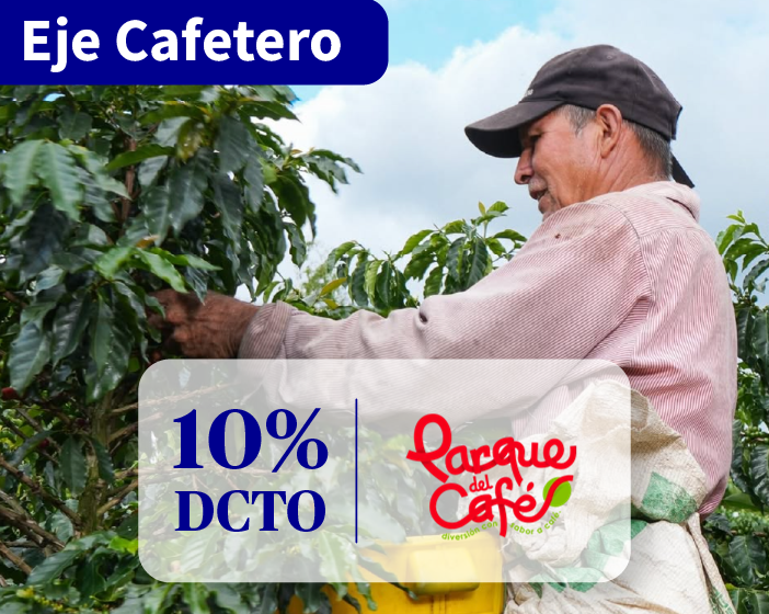 Vive la magia del parque del café. Aprovecha 10 % de DCTO en el Parque del Café y vive un día inolvidable entre atracciones, naturaleza y café colombiano.